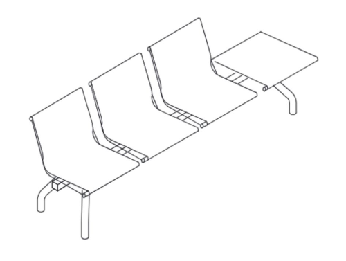 9148-GM PITAGORA - Panca 3 posti + tavolino in acciaio forato verniciato con polveri epossidiche. Dimensioni: L 214 cm