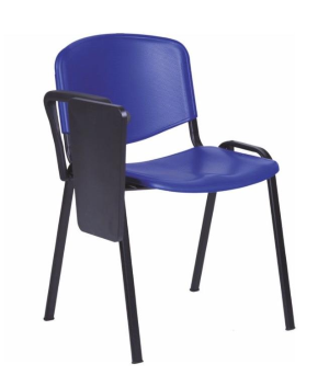 STELLA - Fusto 4 gambe in acciaio verniciato nero con piedini, con bracciolo destro e tavoletta - schienale e seduta in polipropilene