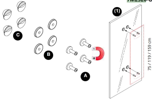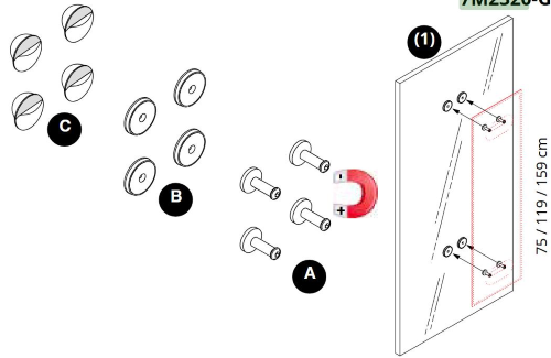 MITESCO - Kit per il fissaggio ad una superficie verticale in vetro o in muratura di un pannello Mitesco. Il kit è composto da: 4 magneti+ 4 dischi in acciaio e tecnopolimero grigio + 4 dischi con biadesivo.