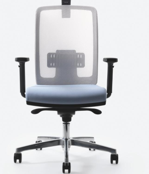 COMETA RETE + TRASLATORE + BASE LUCIDA - Operativa schienale in rete RV reg. Up&Down, BR reg. in altezza con PAD in PU morbido , sedile in schiumato, supporto lombare reg. in altezza e profondità, syncro, ruote maxi D.65 -EN 1335-A-CLASSE 1IM-CAM