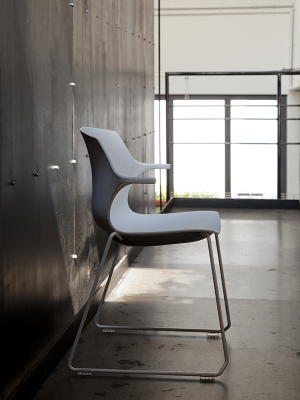 Seduta FRILL con telaio a slitta disponibile cromato o con struttura verniciata nera o bianca. Scocca in polipropilene con braccioli integrati. (SA VERNICIATO BIANCO - SA AN antracite)