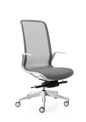 MY MESH - POLTRONA CON POGGIATESTA INTEGRATO, BRACCIOLI FISSI CON DESIGN APERTO, MECCANISMO TX36 ( Oscillante a fulcro avanzato ) RETE NERA