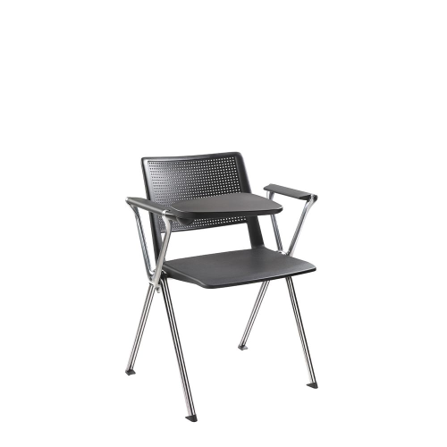 FREE - Seduta fissa 4 gambe con 1 braccolo alluminio nero e tavoletta scrittoio - struttura cromata